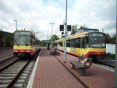 一般の交通連盟では、Sバーンはドイツ鉄道の線路上を走り車両も一般の鉄道と違わないが、KVVのSバーンは鉄道の線路とトラムの線路の両方を走れる