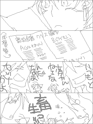 そして。 頑張れば頑張っただけセツナから離れてしまう罠。 プリント配られた後は不貞腐れて膝を抱えていました。 セツナの尻尾を殴りに行こうかとも考えるも、 その後の展開を予想し辛うじて思い留まる。 バスの中では本格的に不貞寝です。 ちなみに季節は夏です。 私の通っていた学校では、夏に強化合宿があったのです。 2泊3日から3泊4日程度、 ホテルにお泊まりして勉強勉強また勉強でした。 シェイドはこれから数日間、 メルキの指導の元日常生活を送らねばなりません。 どうなる。というか、できるのか。 それでは、ありがとうございました! |