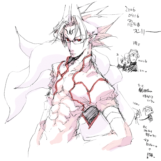 たまには真面目に描こうと思いましたが、挫折しました。 セツナおじいちゃん。 コーチの隣のシェイドはあっさり懐柔されて、お腹を隠す服を着用。 『妊婦はお腹を冷やしてはいけないものだよ』 と言われたと思われますが、お前もう産み終わっただろう気付け。みたいなツッコミ。 忍たまオンリーで描いたのこれだけでした。スケブとか描いていたもので。